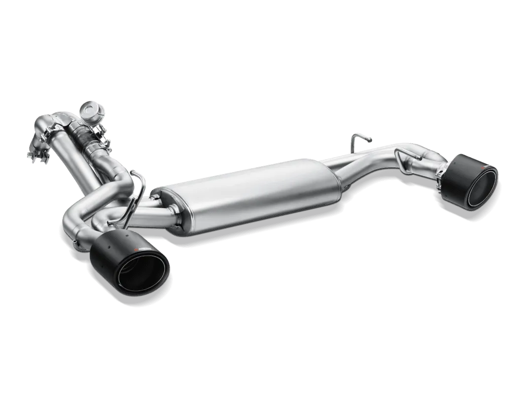 La plus grande différence par rapport au modèle de série est particulièrement perceptible lorsque le kit sonore Akrapovic en option pour un son réglable est utilisé. Lorsque la soupape d’échappement est ouverte, le son devient nettement plus profond et plus fort, mais toujours sans bourdonnement. Les faits de performance s’appliquent à l’ échappement de performance avec le kit sonore Akrapovic et les soupapes ouvertes. Le système sans le kit sonore Akrapovic est doté d’un bloc soudé par points dans le tuyau de liaison qui empêche le contournement du silencieux . Attention : lorsque le bypass est débloqué, l’homologation CE n’est pas valable. Complétez le look avec un ensemble de superbes sorties d’échappement de 115 mm en titane ou en fibre de carbone.