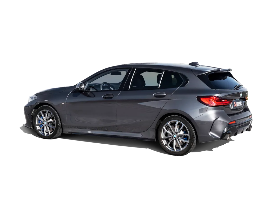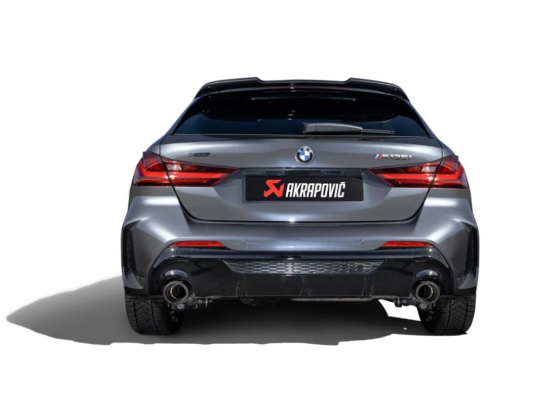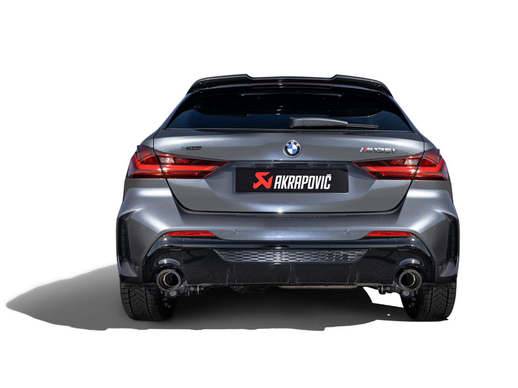 optimisent la puissance et le couple sur toute la plage de régime, avec une augmentation de la puissance de 3,3 kW (4,5 ch) à 5 350 tr/min et un couple de 5,9 Nm à 5 300 tr/min. Ce résultat a été obtenu lors d’essais internes, avec des passages successifs au banc d’essai Akrapovič, contre une BMW M135i équipée d’un échappement d’origine. Pour une mise à niveau supplémentaire du système d’échappement Slip-On Line (titane), un jeu de tubes Evolution Link (SS) est disponible en option.Le système d’échappement est homologué ECE pour les voitures équipées d’un filtre à particules Otto/essence.Pour installer le système d’échappement Slip-On Line (Titanium), le système d’échappement d’origine doit être coupé ; veuillez lire attentivement les instructions avant de commencer l’installation.
