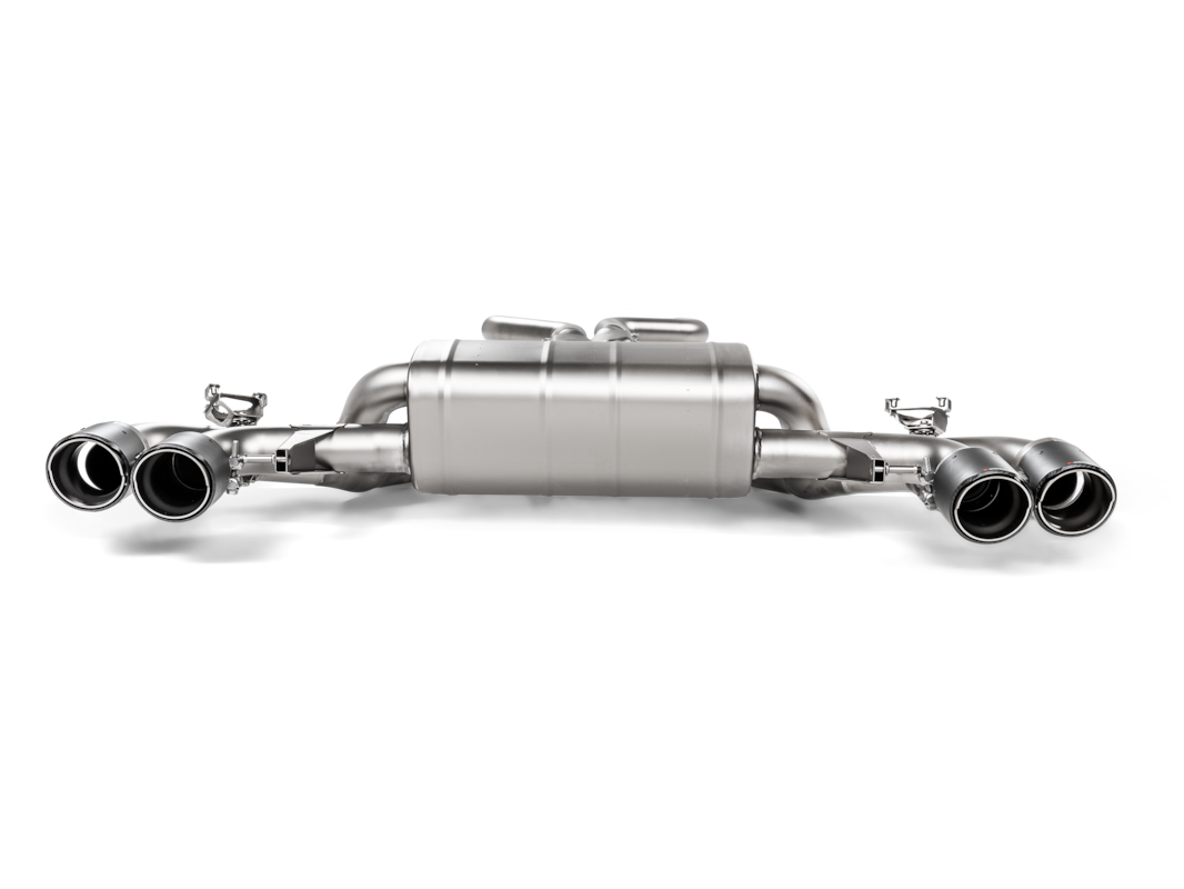 Fabriqué en titane léger de haute qualité , dont certaines pièces sont moulées dans la fonderie Akrapovič, ce système réduit le poids du système d’échappement. Développé pour offrir des gains de puissance et de couple sur toute la plage de régime, notamment à bas régime, il améliore la réactivité et la maniabilité. Ce système produit une sonorité distincte de celle du système d’origine, particulièrement perceptible lors des changements de vitesse, des ratés d’allumage et des accélérations. Les sorties d’échappement en fibre de carbone ont été parfaitement conçues pour s’intégrer harmonieusement au diffuseur en fibre de carbone (optionnel). Des coques de rétroviseurs en fibre de carbone sont également disponibles en option pour sublimer l’esthétique de la voiture.