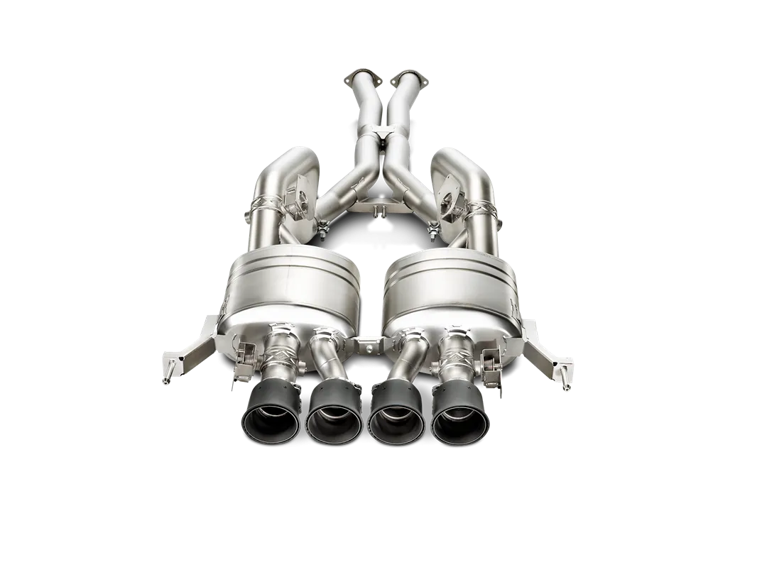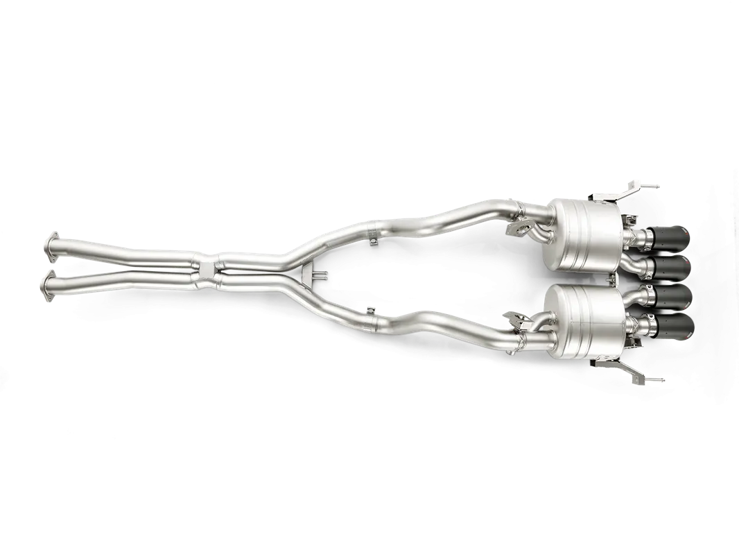 Avec quatre soupapes, la première paire fonctionne en mode quatre cylindres et la deuxième entre en action selon les spécifications du conducteur. Avec un dispositif électronique développé par les ingénieurs d’Akrapovič pour les cinq modes GM standard (Weather, Eco, Tour, Sport et Track), le système est parfaitement adapté pour fonctionner avec le sélecteur de mode de conduite de la voiture. Cela produit une gamme encore plus large d’options pour que le conducteur puisse profiter pleinement du son incroyable de la voiture. Le système Evolution Line, avec un nouveau tuyau en X, offre des performances encore supérieures par rapport au système Slip-On Line et fournit une bande sonore de course pure pour ce moteur époustouflant, avec les