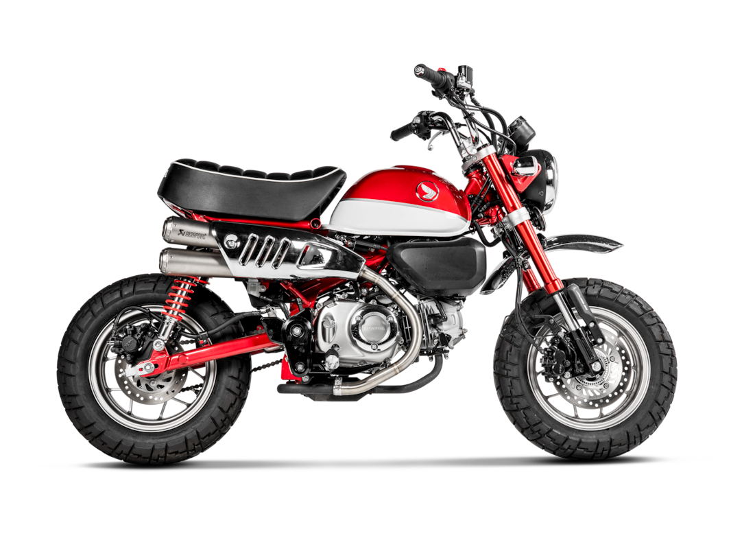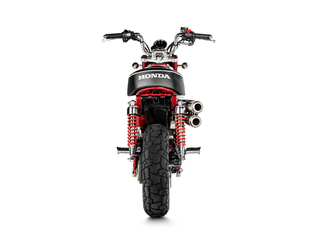 Cet échappement aux lignes élégantes s’accorde parfaitement avec le caractère unique du Monkey. Les doubles silencieux coniques sont en acier inoxydable, avec des manchons en titane, un matériau éprouvé en compétition .