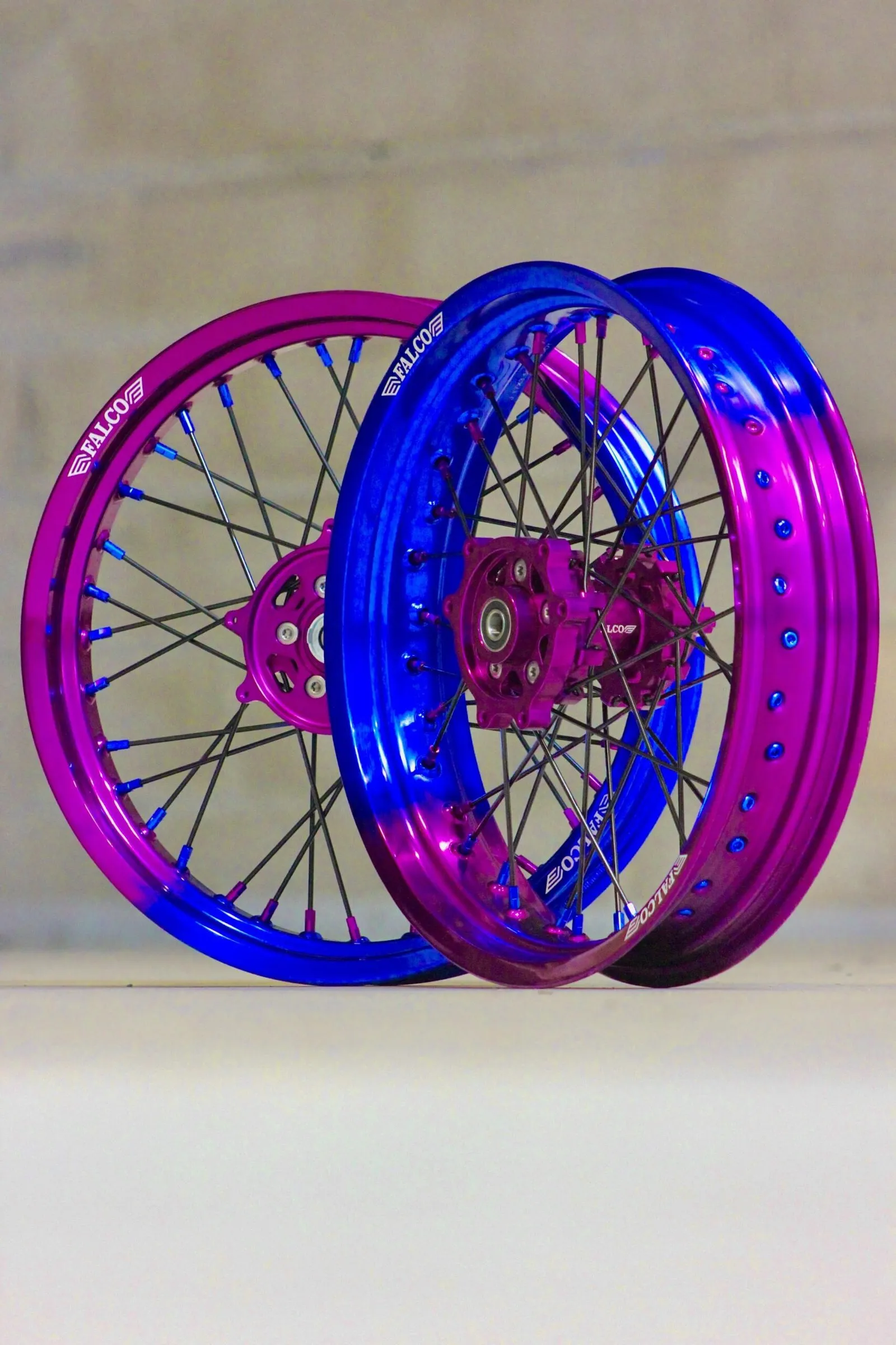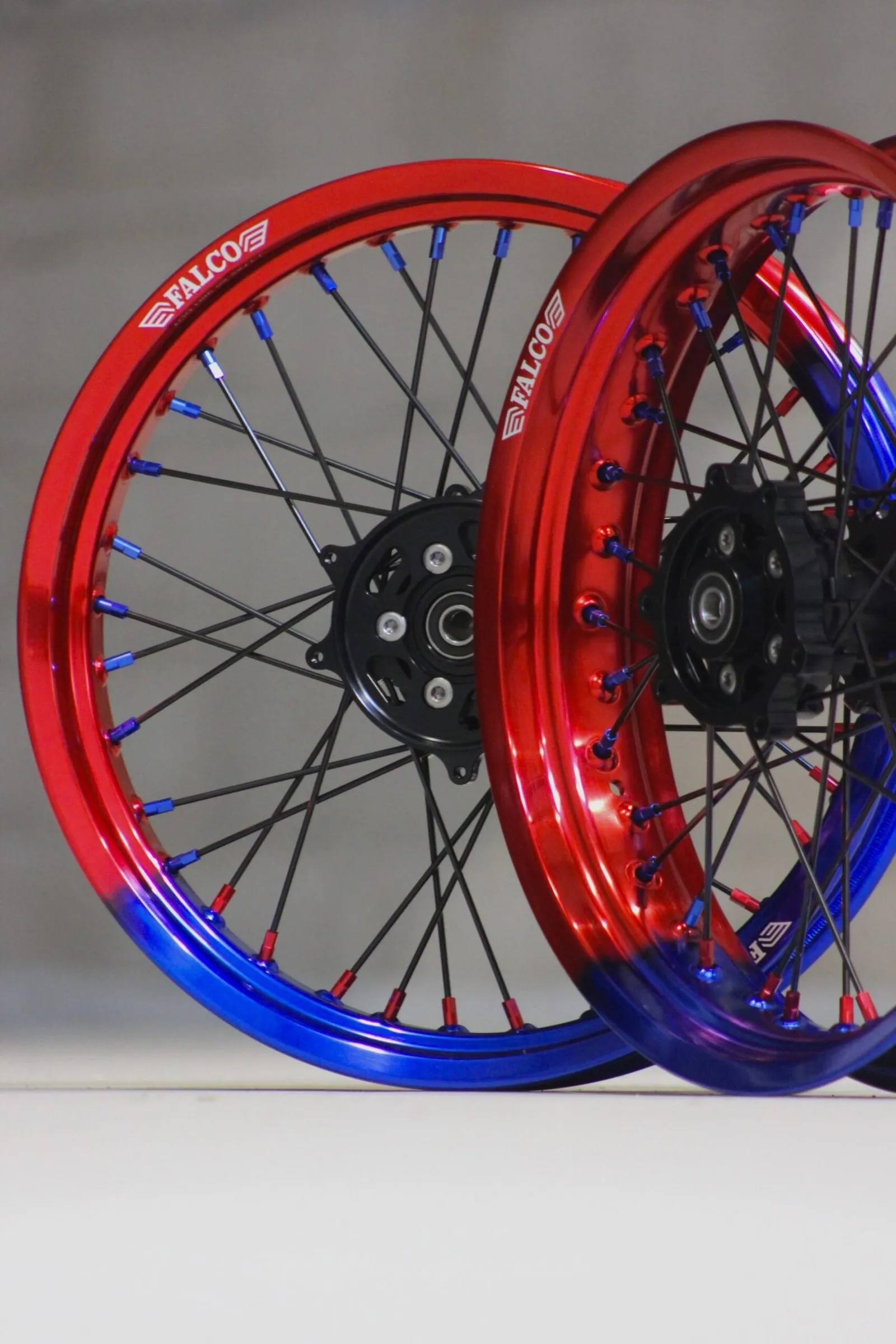 Les jantes Bicolore degrade Supermotard FALCO® pour 50cc sont 100% Personnalisables !
