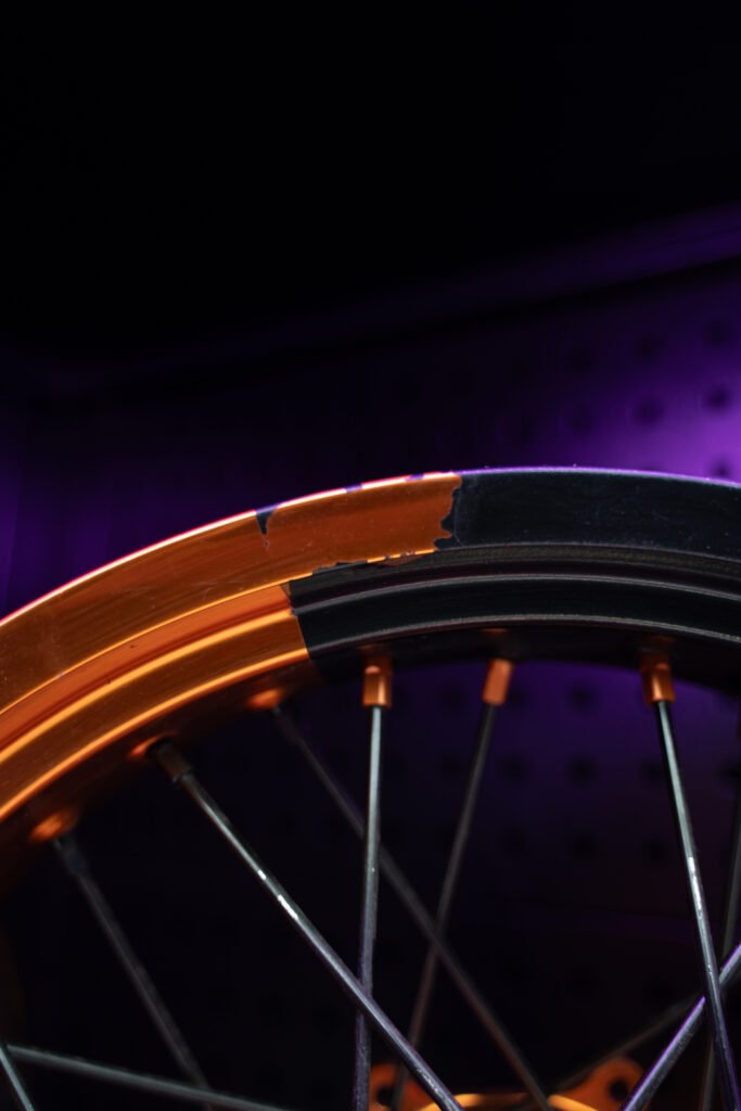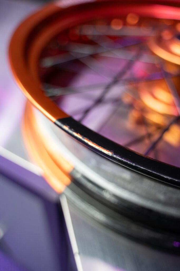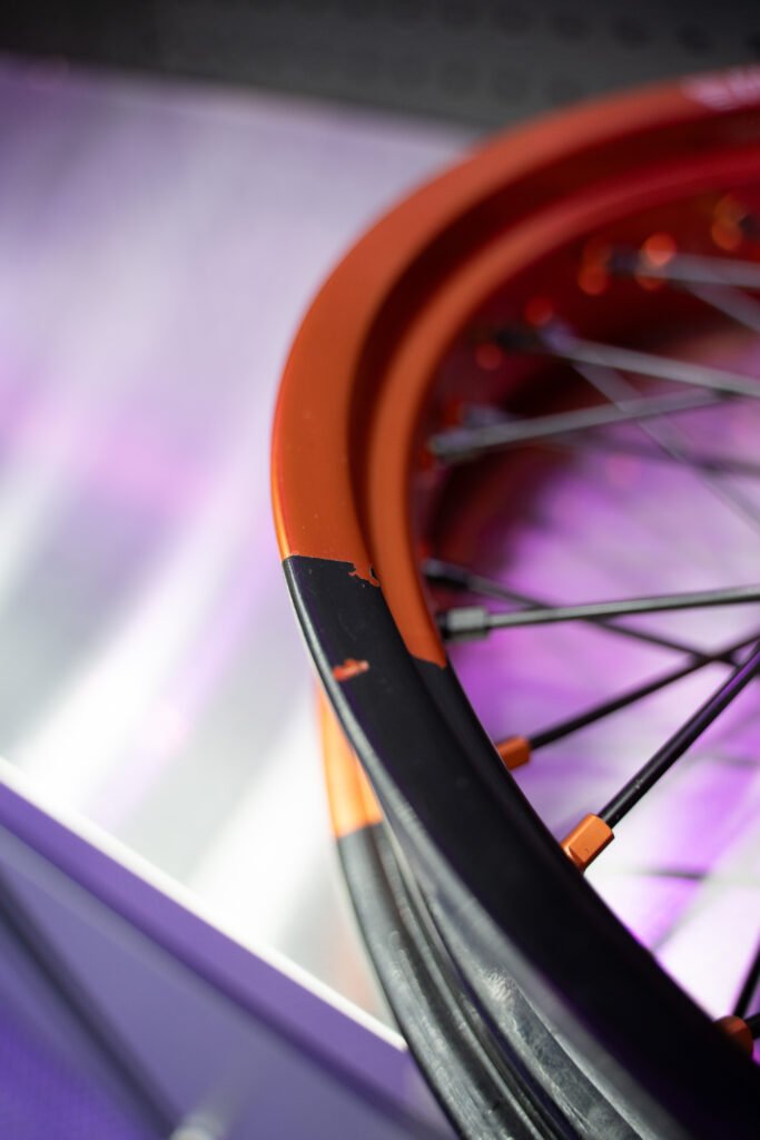 Jantes supermotard pour ktm qui présente un gros default au niveau du bicolore (voir photo)