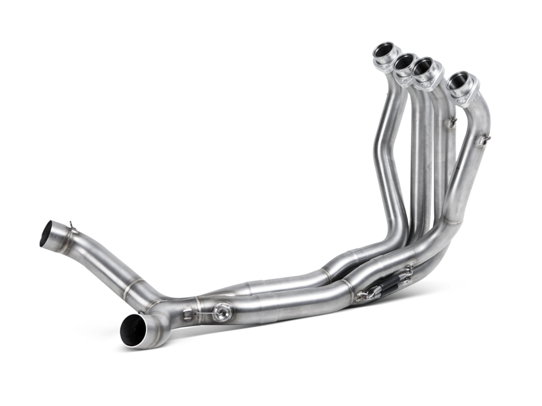Disponibles en option, les collecteurs en acier inoxydable de la plus haute qualité permettent de passer à un système complet avec le système d’échappement Slip-On Akrapovič .