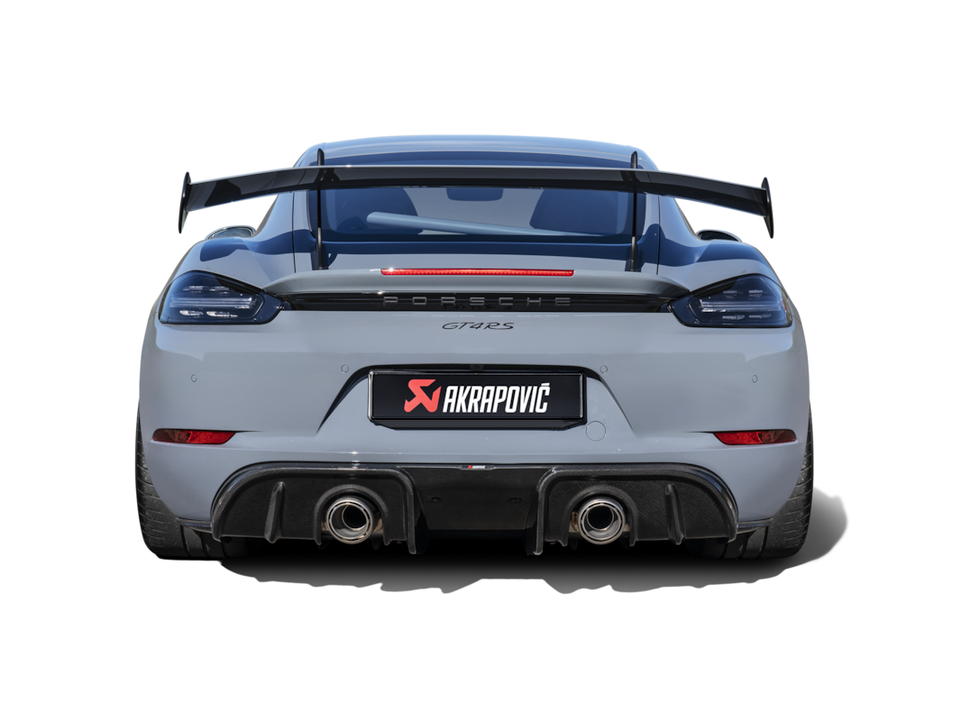 L’Akrapovič Slip-On Race Line présente une construction sophistiquée alliant forme et fonctionnalité. Les sorties d’échappement sont plus larges que celles du système d’origine, avec une coque extérieure revêtue pour plus de durabilité et une coque intérieure moulée non revêtue. Cet intérieur non revêtu réagit à la chaleur et prend au fil du temps une jolie coloration bleue, signature du savoir-faire Akrapovič. Chaque sortie d’échappement est gravée au laser du logo Akrapovič, soulignant l’esthétique haut de gamme de la marque. Des diffuseurs arrière en fibre de carbone, mats ou brillants, sont disponibles en option pour compléter le design du système, alliant style et gain de poids appréciable.Les réglementations modernes en matière d’émissions et de bruit étouffent souvent le son et les performances des voitures de course, mais l’Akrapovič Slip-On Race Line (Titanium) restitue l’expérience viscérale que méritent les Porsche 718 Cayman GT4 RS et Spyder RS. Conçue et fabriquée pour une intégration parfaite, cette mise à niveau matérielle est sans compromis.