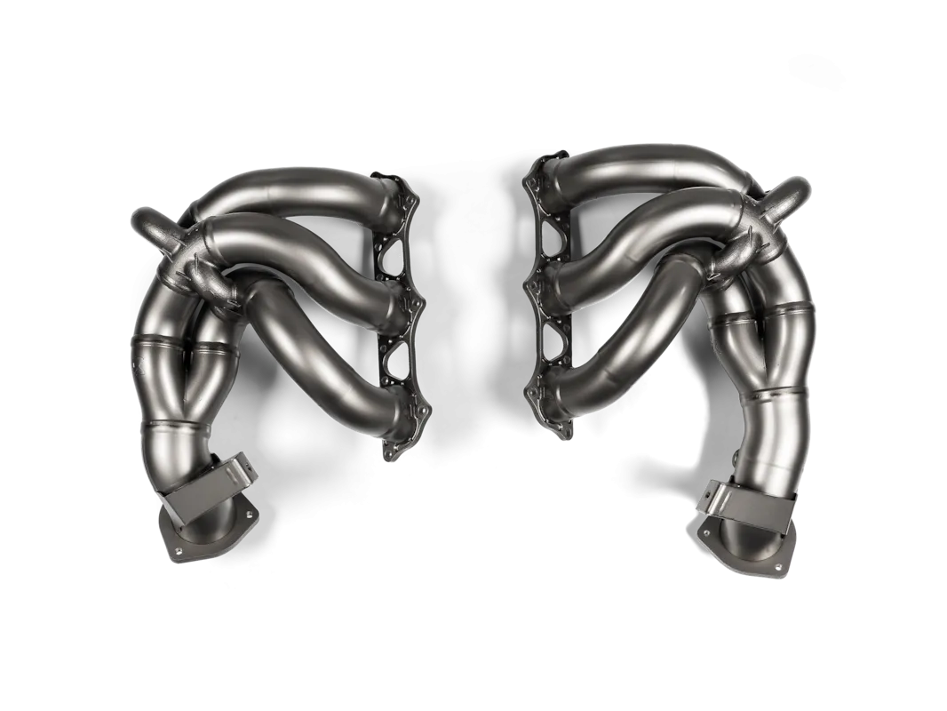 Utilisant des solutions éprouvées en compétition, ce collecteur d’échappement en titane de haute qualité est doté d’un élément de croisement de collecteur spécifique de chaque côté. Cette innovation technologique, véritable chef-d’œuvre d’ingénierie, améliore les performances de l’échappement complet à mi-régime. Plusieurs pièces sont moulées dans notre fonderie interne , notamment les collecteurs trois-en-un conçus pour un flux de gaz fluide. Son poids est inférieur de 5 kg (51,9 %) à celui du système standard et, avec la ligne Slip-On Race (titane) et le jeu de tubes de liaison (titane), la puissance et le couple augmentent de 26 kW (35,4 ch) à 4 900 tr/min et de 50,9 Nm à 4 900 tr/min lors des tests sur le banc Akrapovič avec une Porsche 718 Cayman GT4 RS équipée d’un système d’origine.